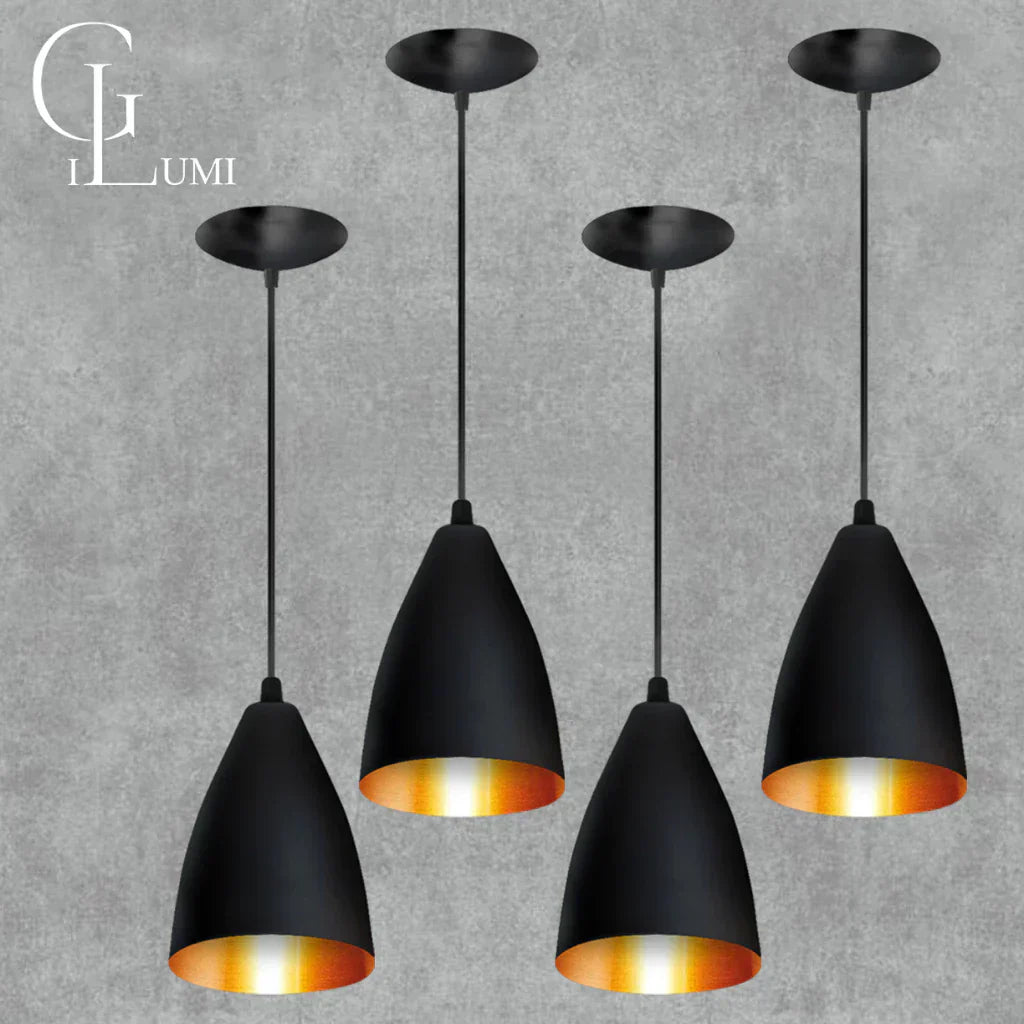 Kit 4 Pendentes Vegas – Preto Texturizado com Bronze