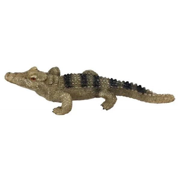 Adicione um toque de natureza ao seu jardim com este enfeite decorativo de jacaré em resina. Realista e com excelente acabamento, é ideal para quem busca peças decorativas duráveis e com detalhes minuciosos.