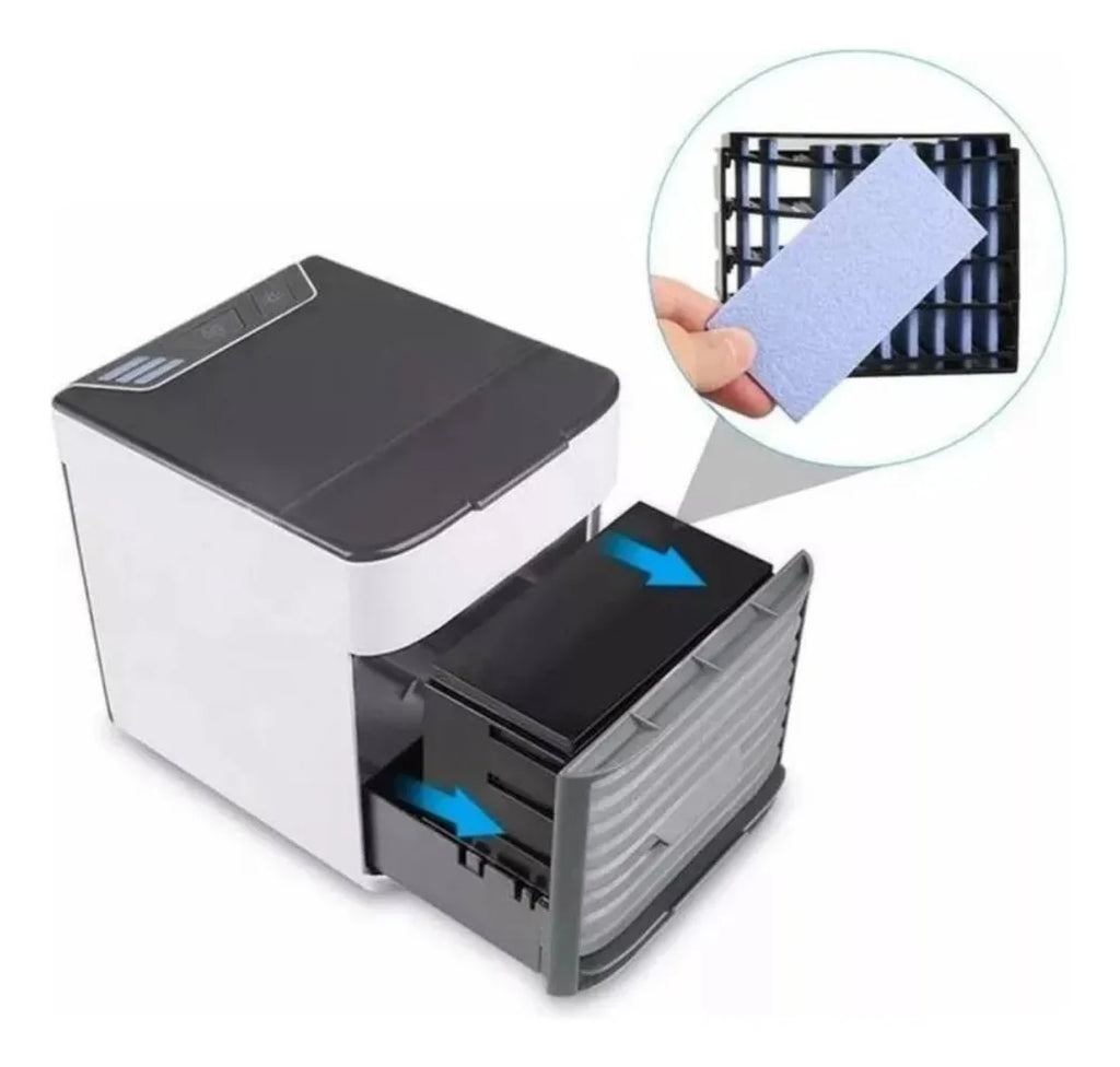 Com funcionamento via USB, o mini ar condicionado portátil pode ser ligado no notebook, power bank ou tomada USB, garantindo baixo consumo de energia. É uma alternativa inteligente para quem quer fugir do alto custo do ar-condicionado tradicional.