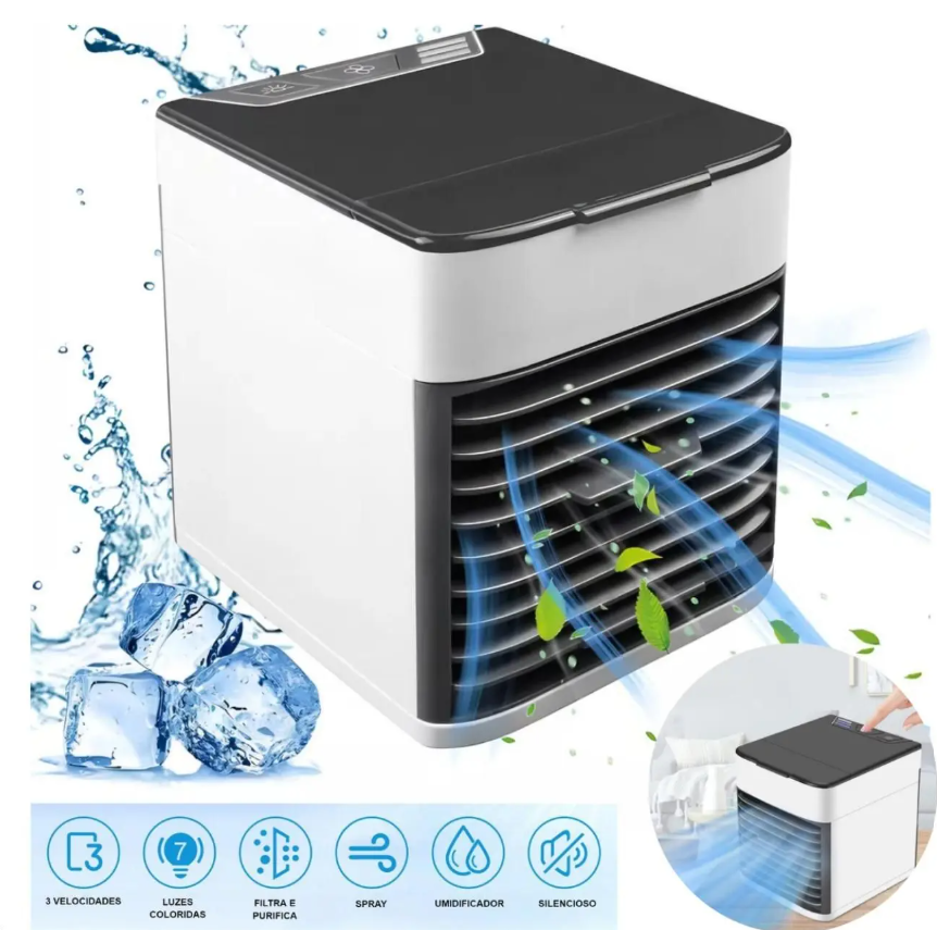 Refresque seu ambiente com o mini ar condicionado portátil 3 em 1. Compacto, econômico, com luz LED e envio imediato. Praticidade e conforto para o dia a dia.