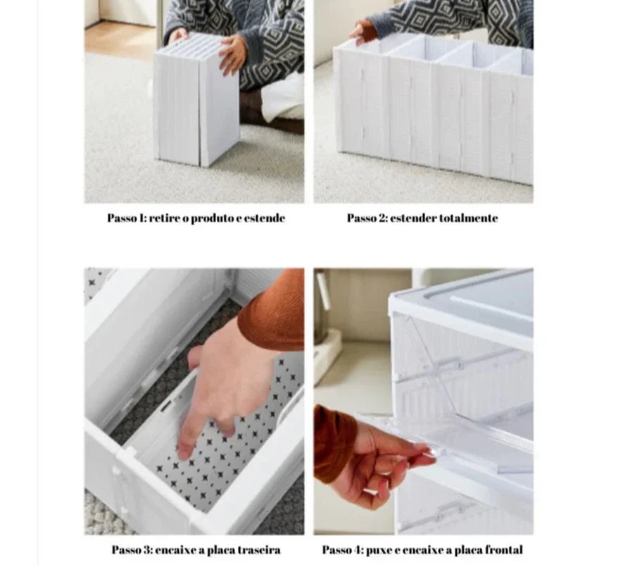 Fácil Instalação: Com um design intuitivo, a caixa dobrável é simples de montar em apenas 4 passos.